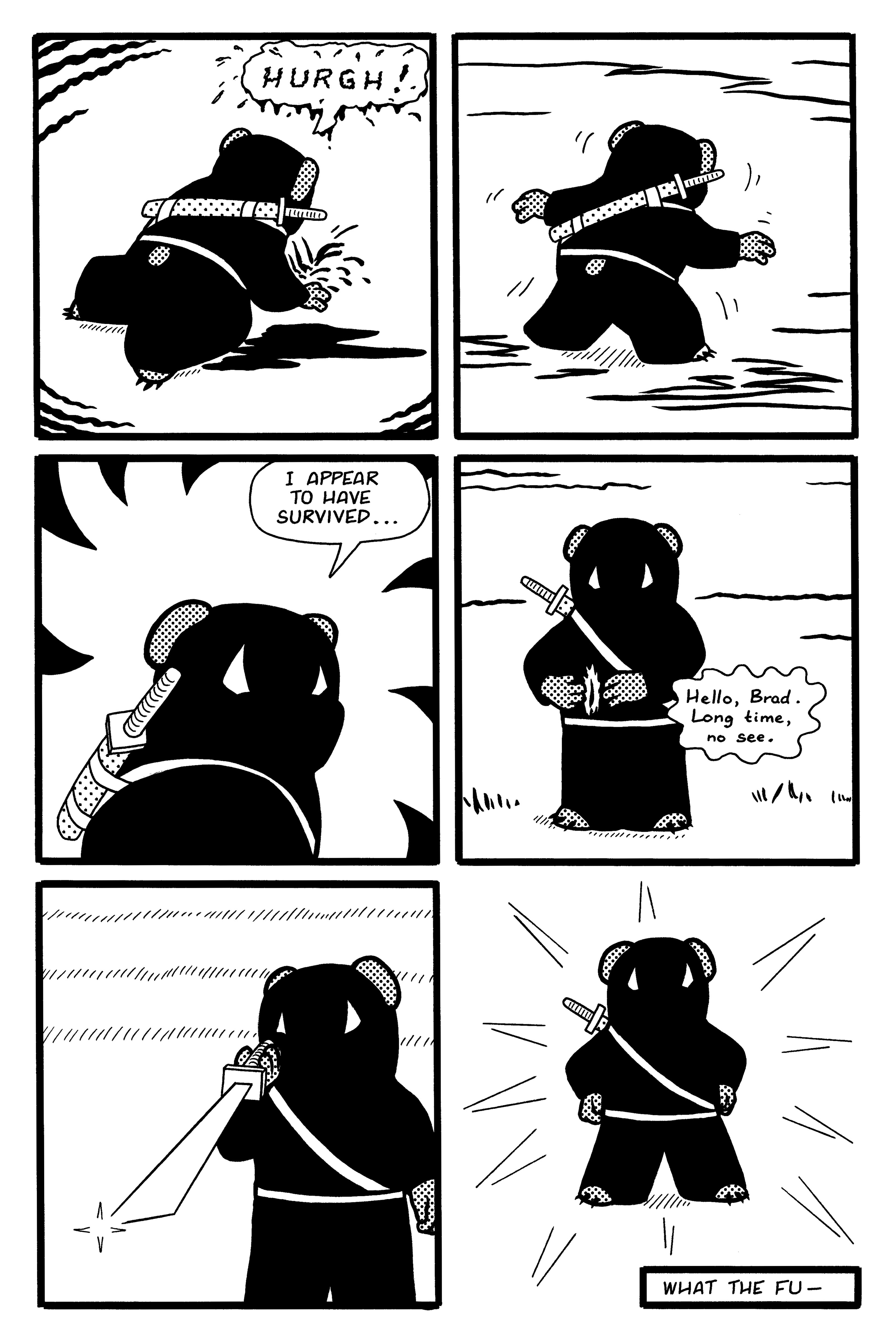 Ninja Bear #2 was finished a year later. I had an inkling that I was going to do this for a while, but I wasn't exactly sure what would happen. So, I wrapped up the Stay as you are. storyline, gave Ninja Bear a new friend, introduced a shadowy cabal of mysterious villains whose boss remains unseen, then had Ninja Bear wander around a bit encountering diversions. It's expanding the world a bit while I'm killing time, figuring out where it's all going.